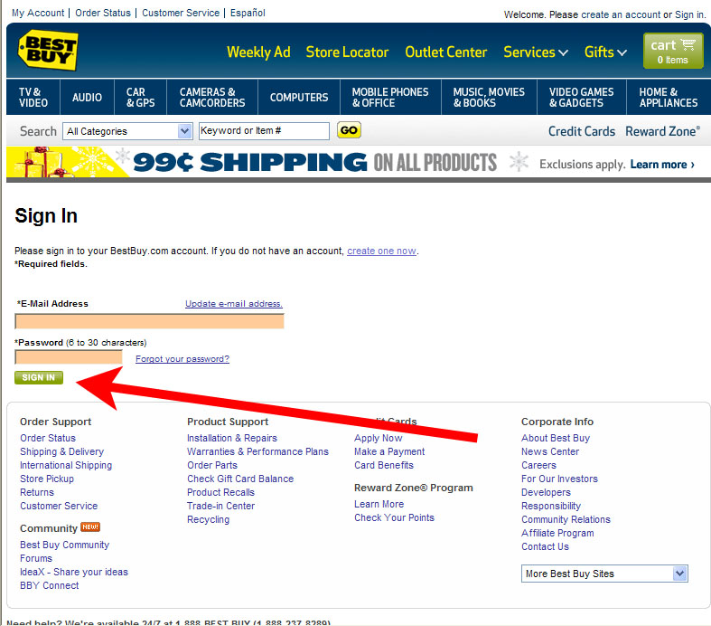 | It will ask you to sign in. If you received your Pitch In Card in the mail or have already created an account previously, type in the email address and password you used previously and click on the Sign in link. But if you did not already create an account or have recntly picked up a Pitch In Card from a BestBuy Store, you should go back to the first BestBuy Page I made for you and start at the third picture. | ![]() |