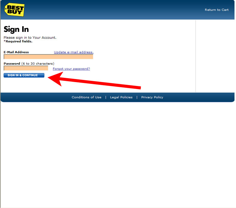 | It will ask you to sign in. If you received your Pitch In Card in the mail or have already created an account previously, type in the email address and password you used previously and click on the Sign in link. But if you did not already create an account or have recntly picked up a Pitch In Card from a BestBuy Store, you should go back to the first BestBuy Page I made for you and start at the third picture. | ![]() |